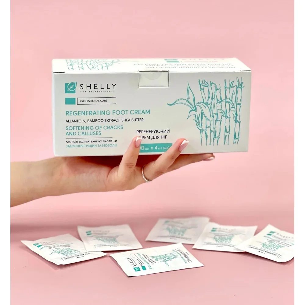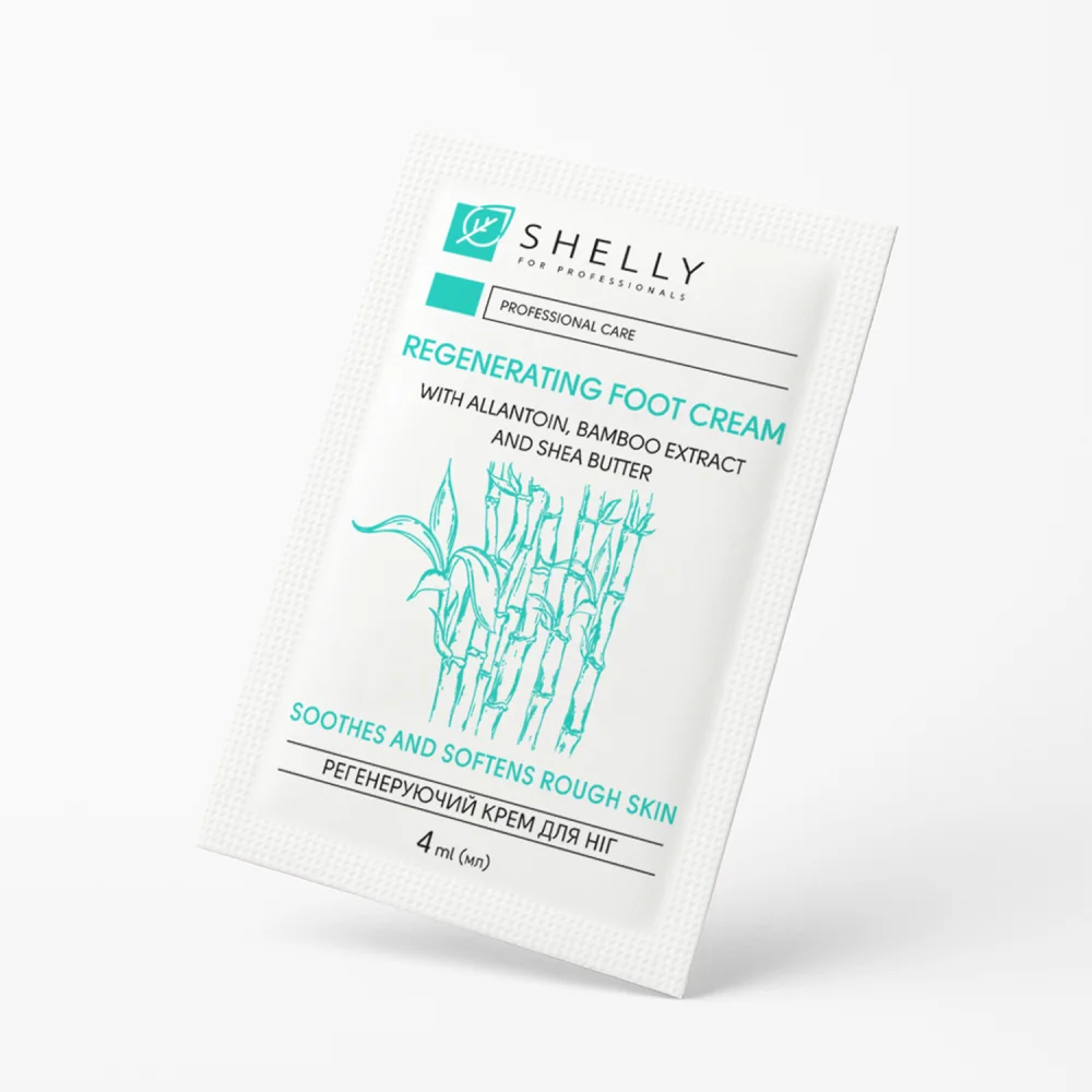 Опис регенеруючого крему для ніг з алантоїном, екстрактом бамбука і маслом ши Shelly
