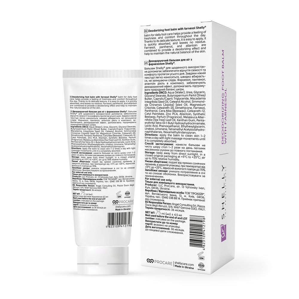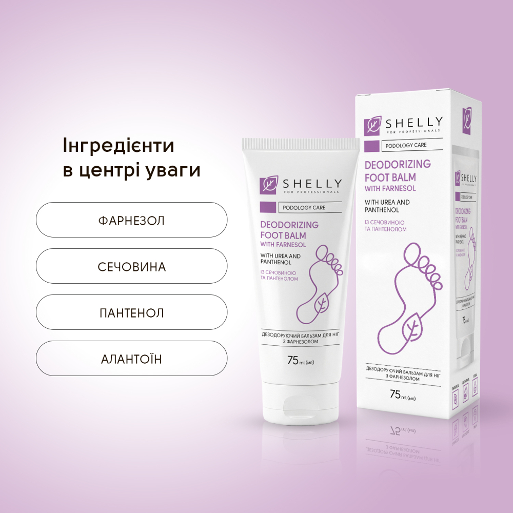 Активные компоненты дезодорирующего бальзама для ног Shelly: